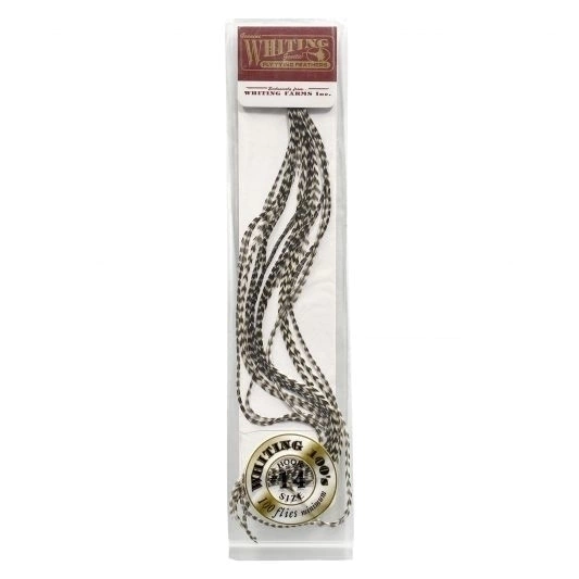 Uno de los productos de atado de moscas más populares, los paquetes de Saddle Hackle de Whiting 100´s ofrecen una comodidad incomparable! Se puede acceder cómodamente al hackle genético Whiting en el tamaño adecuado en su propio cartón protector, etiquetado y listo para atar.